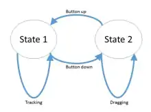 ![]() 2 State Transaction | 当鼠标没有按下按钮时的移动,表示用户移动鼠标并没有与系统发生交互。当鼠标按下了按钮并移动,表示“拖放”操作。 |