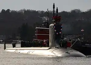 ![]() 密蘇里號於2013年12月抵達新倫敦海軍潛艇基地。 | |