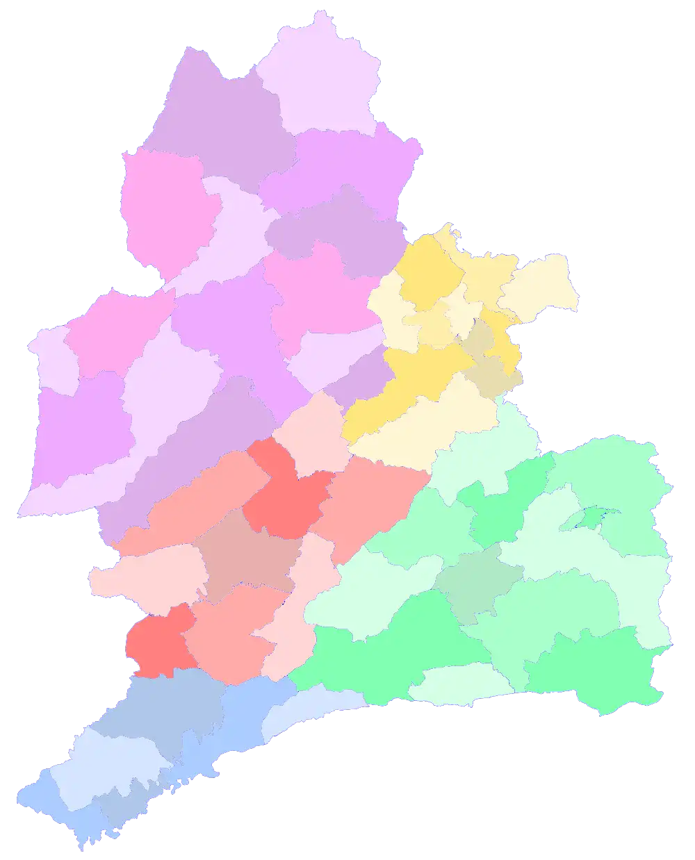 | 名称 | 区划代码 | 建制时间 | 面积 | 人口 | 人口密度 | 工业总产值 | 主要民族 | 词源 | 位置图 |