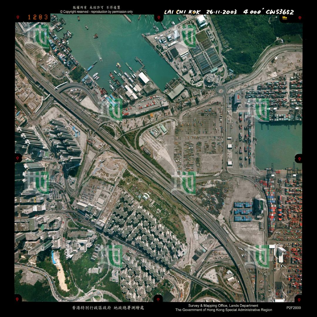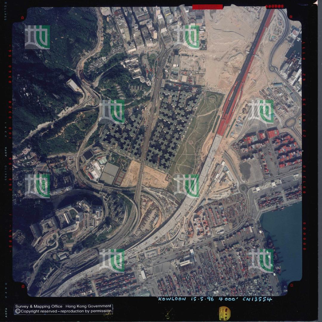 13. ↑航空圖可見西灣河臨時車厰 通住 太古站的隧道出口 康山項目移山用的運輸帶 西灣河碼頭 西灣河碼頭巴士總站