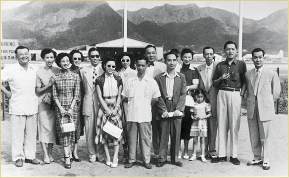 - 1954年初前排正中 (页面存档备份,存于), 【明周娛樂】任姐與仙姐到安南做大戲,演出團隊與送行者眾,包括有陳錦棠、梁醒波夫婦、唐滌生等。